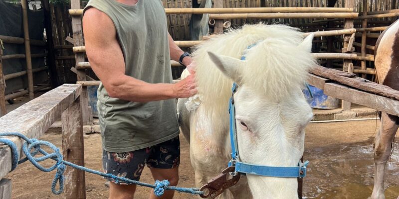 I spent four days volunteering alongside the staff and long-term volunteers — brushing, grooming, helping with stable duties, and joining the morning and afternoon beach walks.